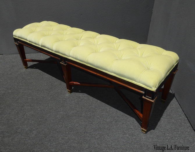 Uncategorized End Of Bed Bench Green - Vasagle industrial storage bench, shoe bench, bed end stool with padded seat and metal shelf, storage chest, sturdy steel frame, hallway, living room while there are numerous storage options out there, the end of the bed storage bench was designed specifically with the bedroom in mind. Green leather tufted benches sit at the foot of a green velvet tufted bed complemented with green trellis bedding and monogrammed shams.